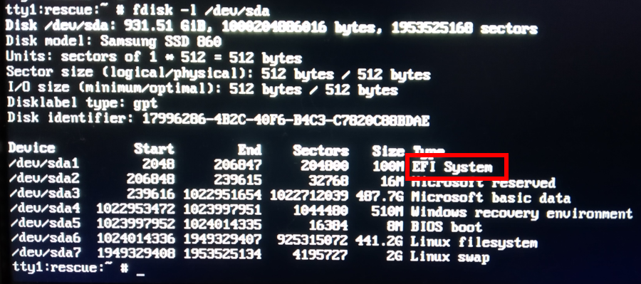 Como se puede ver en la imagen la primera particion es una particion EFI, por lo tanto el sistema tenia arranque UEFI, asi que necesitaremos arrancar con un sistema UEFI, si ya lo habiamos hecho perfecto si no, pues tendremos que reiniciar y seleccionar el sistema UEFI en el menu de arranque
