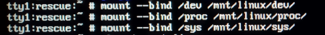 # mount --bind /dev /mnt/linux/dev