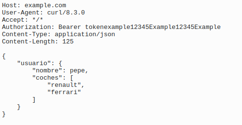 Para enviar una solicitud POST (con contenido en formato JSON) con una autorización de tipo Bearer lo hacemos asi:
